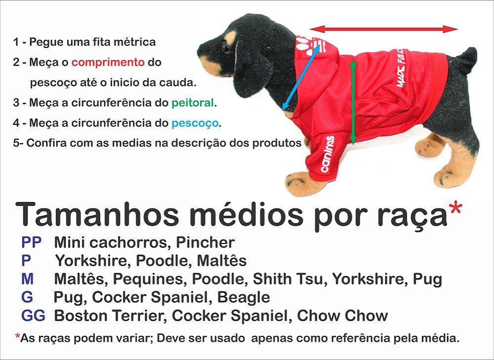 Tamanhos: Comprimento x Pescoço x Barriga (cm)